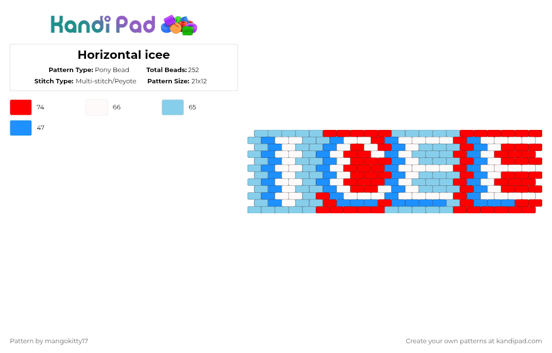 Horizontal icee Pony Bead Pattern - Kandi Pad | Kandi Patterns, Fuse ...