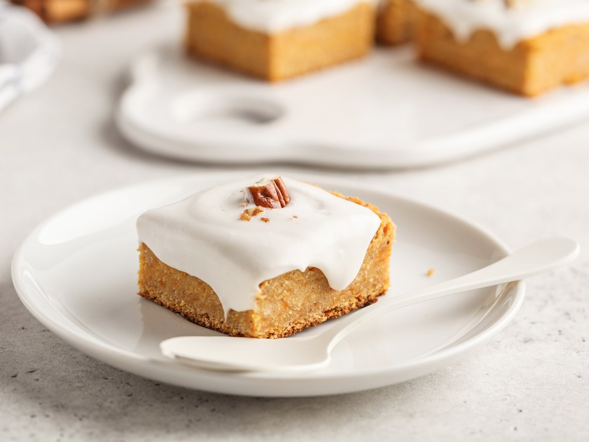 Vegan carrot cake with coconut frosting