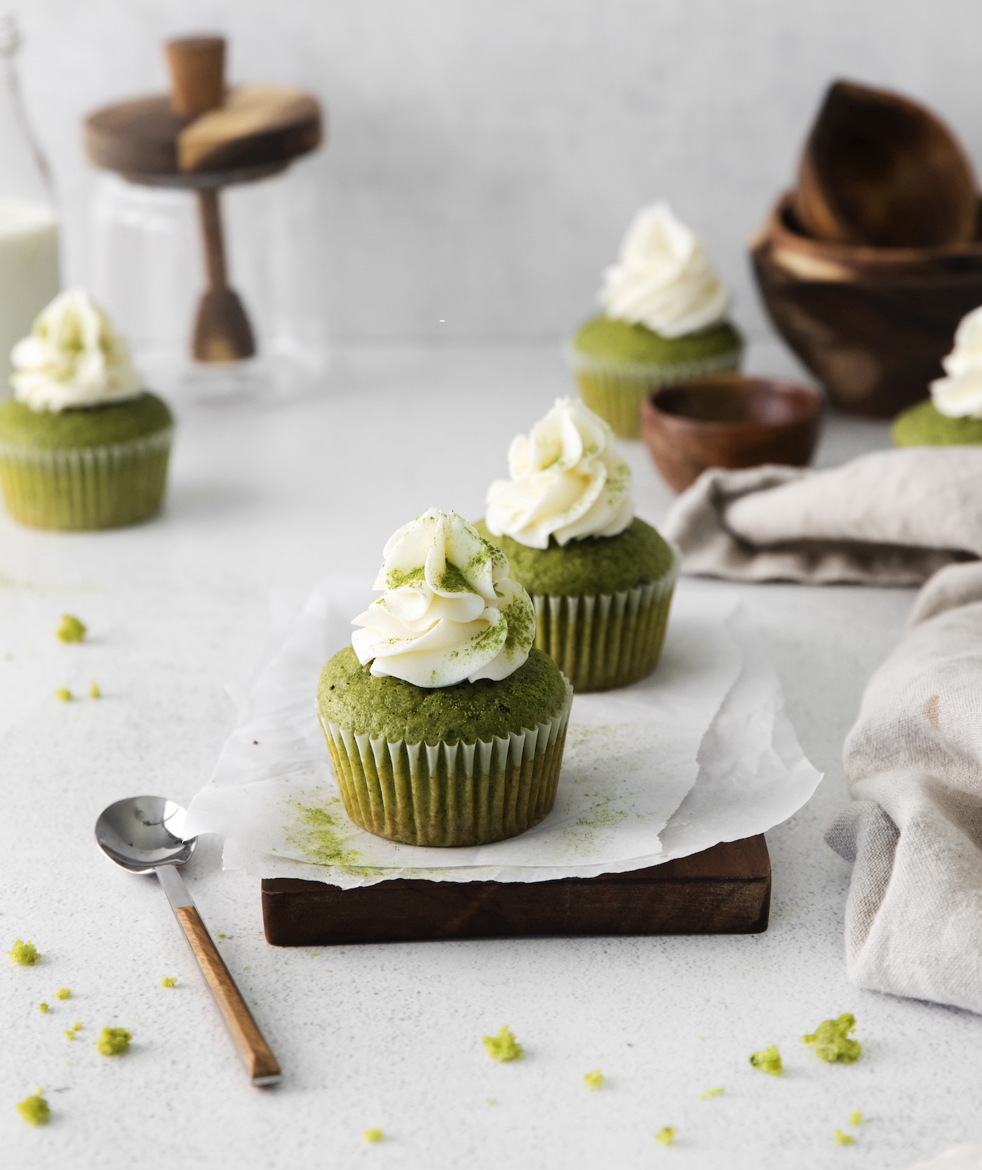 Matcha cupcakes with vanilla cream cheese frosting