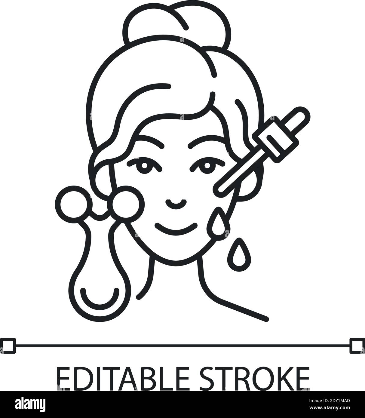 Massage with microcurrent apparatus on face of woman line icon vector ...