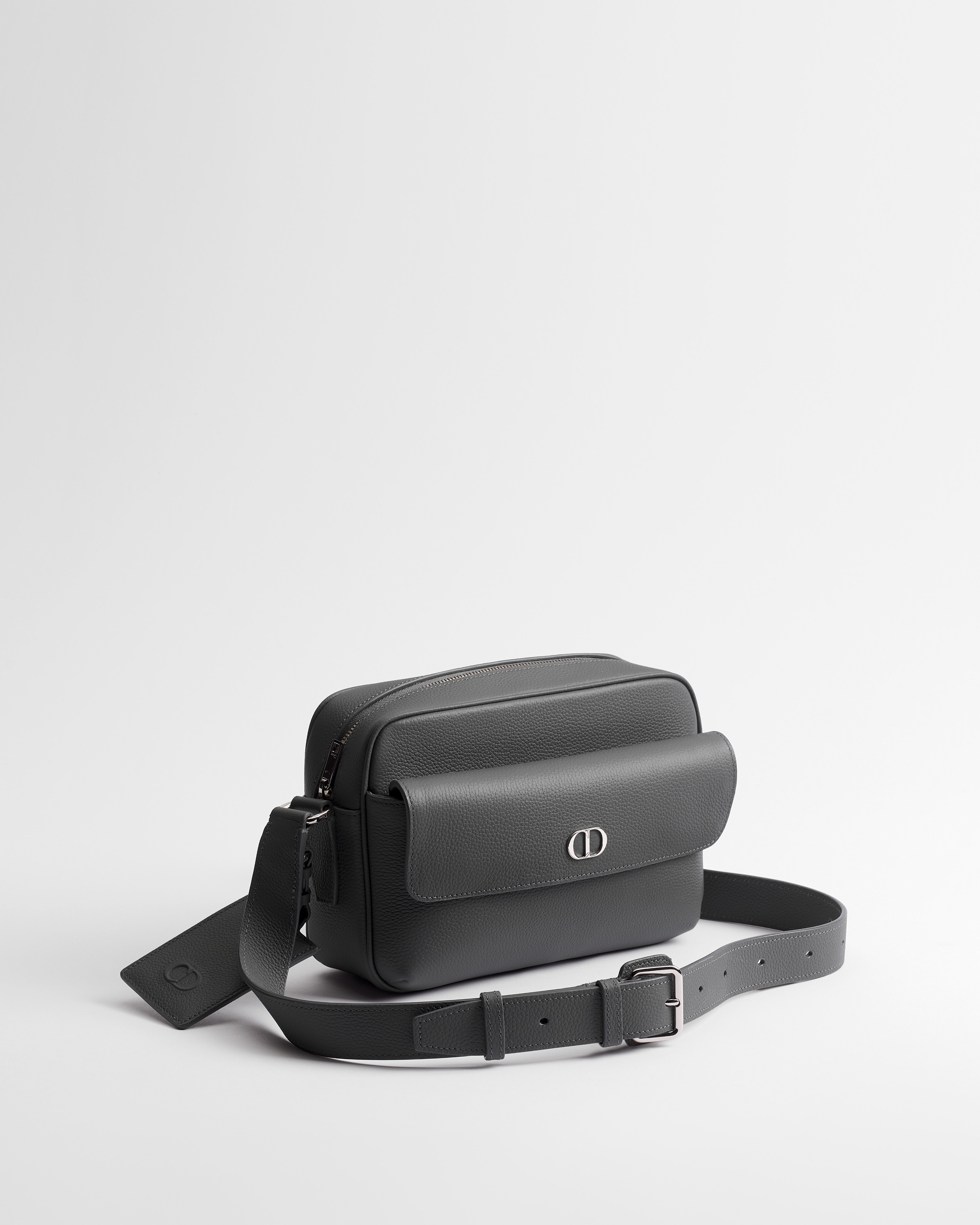 CD Icon Zipped Messenger Bag Gris Flanelle Matte Grained Calfskin | DIOR
