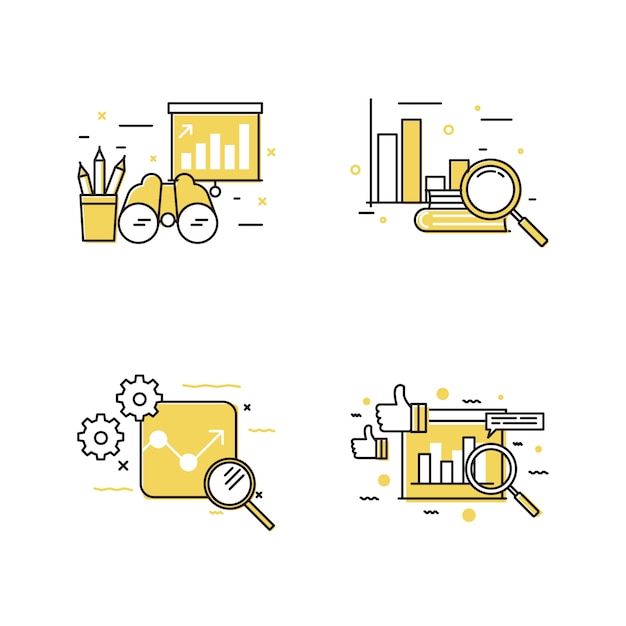 Data analysis vector line icons set. Analytics, Mining, Exploration ...