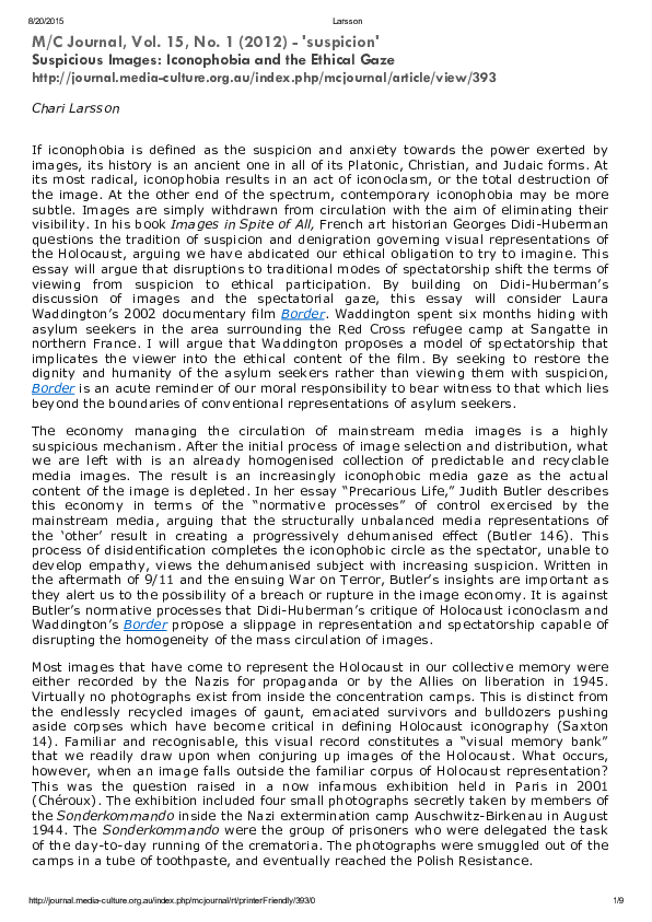 (PDF) Suspicious Images: Iconophobia and the Ethical Gaze