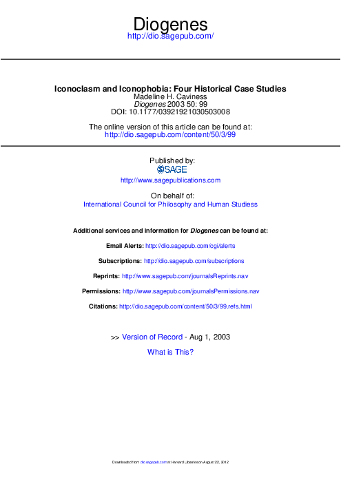 (PDF) Caviness 2003, Iconoclasm and Iconophobia, Diogenes, no. 199, pp. 99-