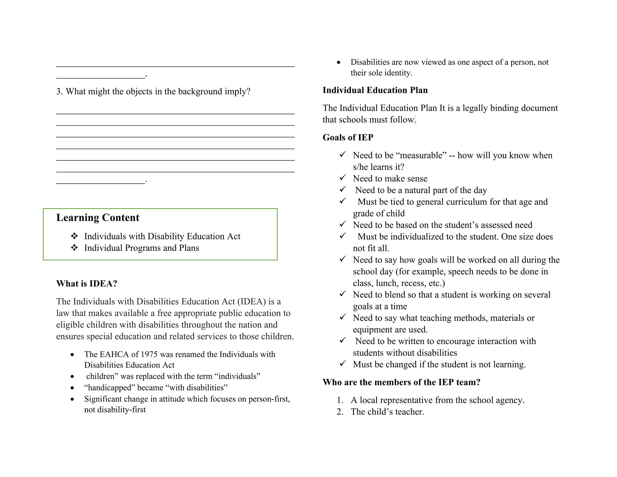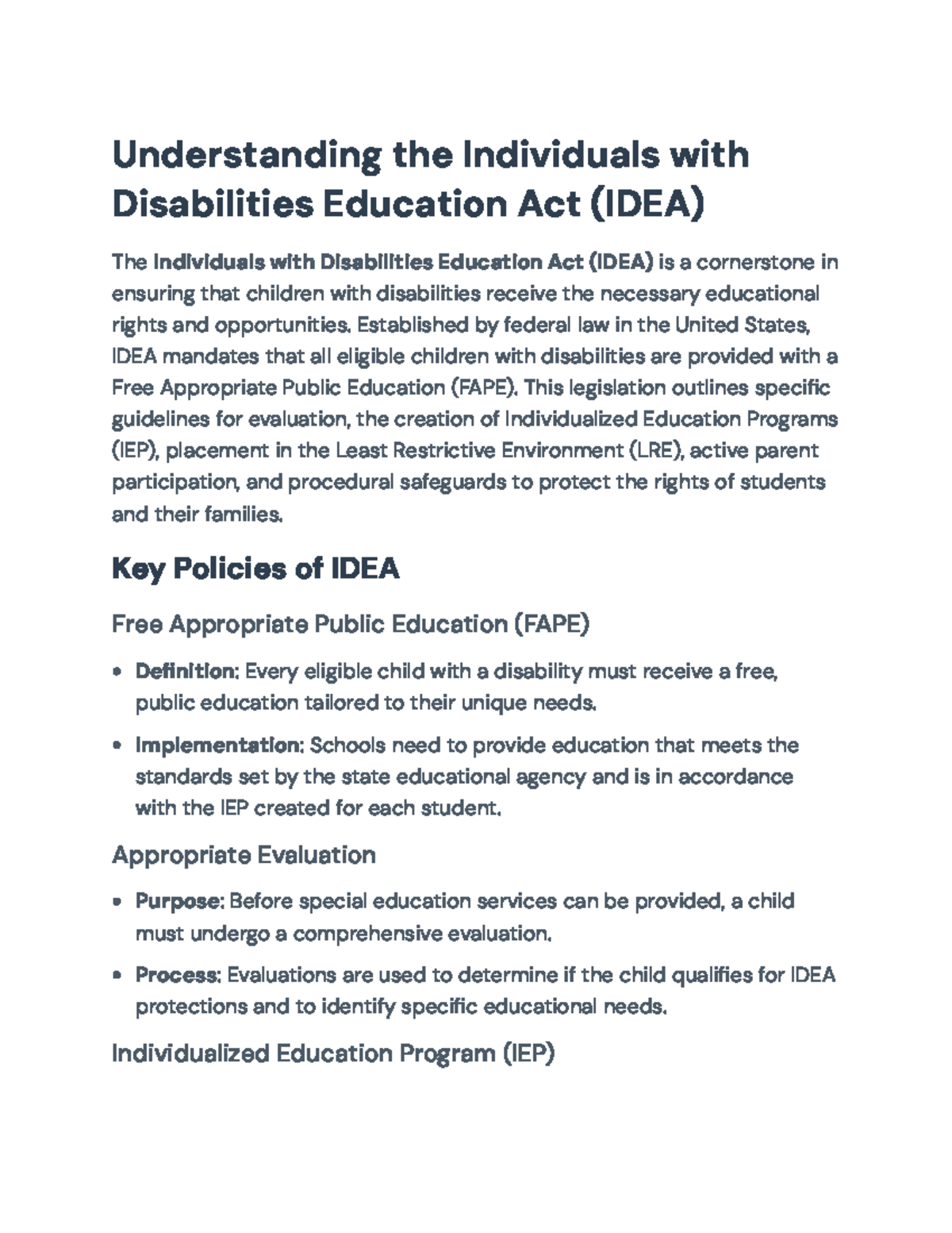 Understanding IDEA Principles for Special Education: A | Course Hero