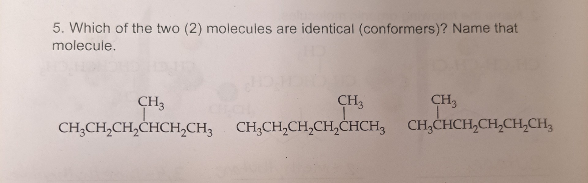5 which of the two 2 molecules are identical conformers name that molecule