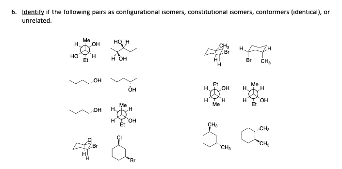 Solved: 2. Identify Each Pair As Identical, Conformers, En... | Chegg.com