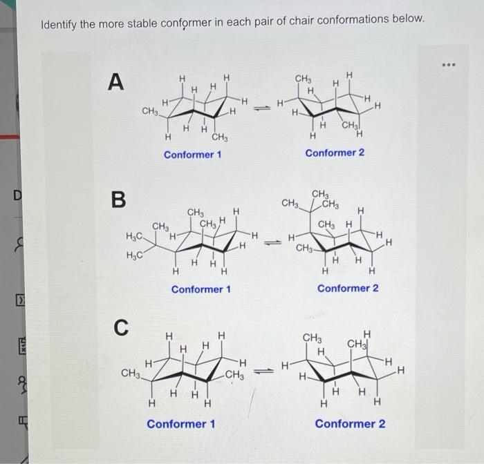 b. For each pair, indicate which conformer is more stable. | Channels ...