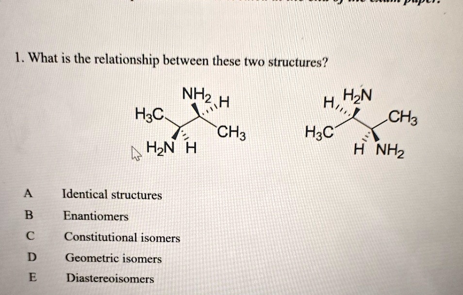 1 what is the relationship between these two structures nh2 h h3c h2n h ...