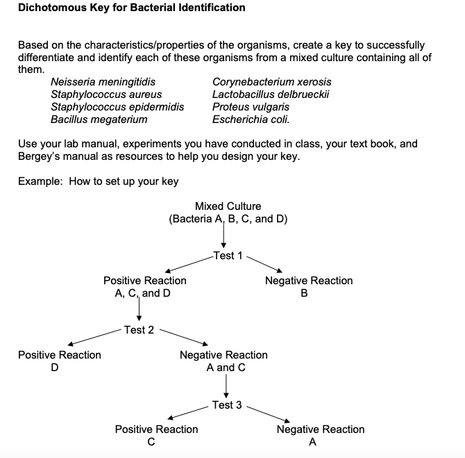 Constructing a Dichotomous Key for Bacteria Identification | Course Hero