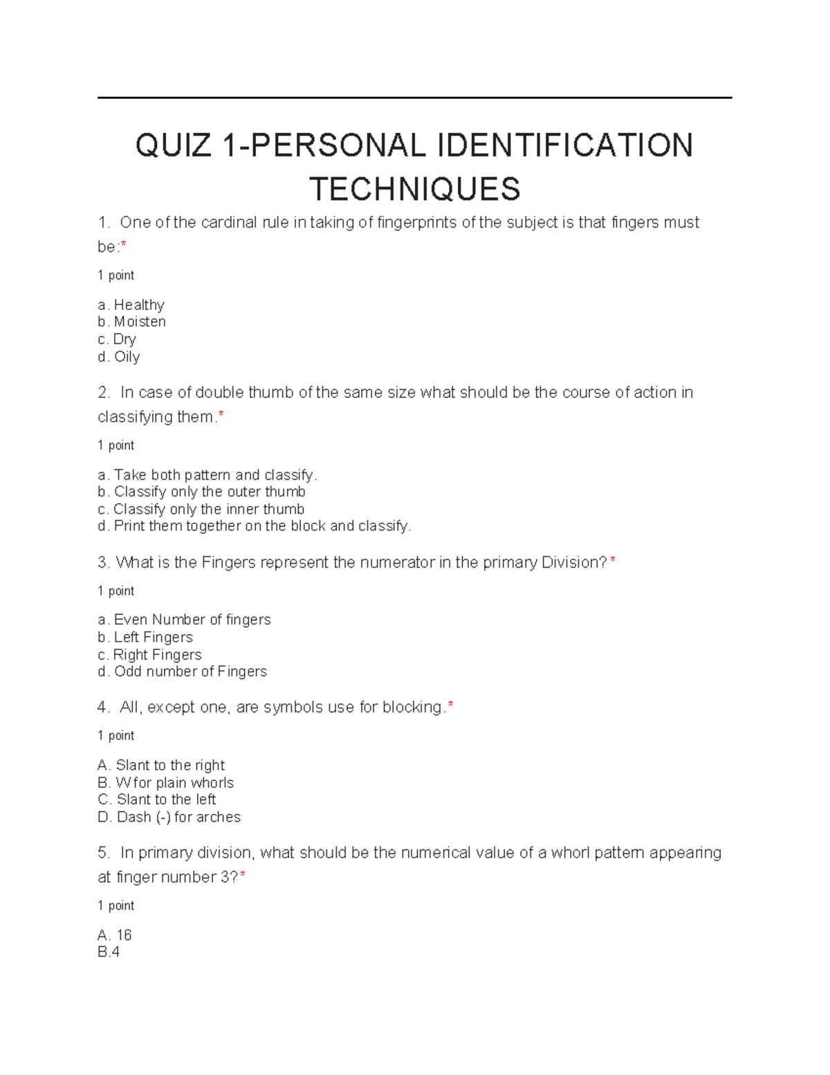 QUIZ 1 - Personal Identification Techniques Overview & Key Concepts ...