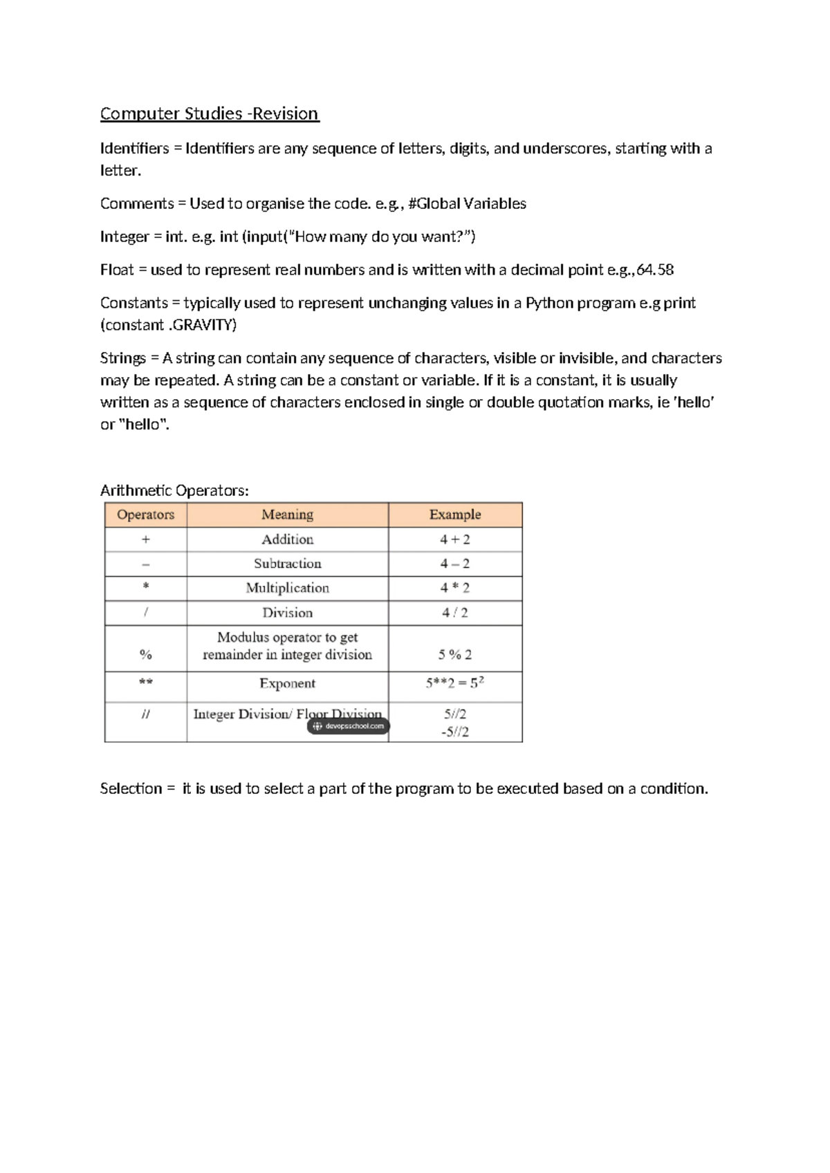 CS revision PLS - Computer Studies -Revision Identifiers = Identifiers ...