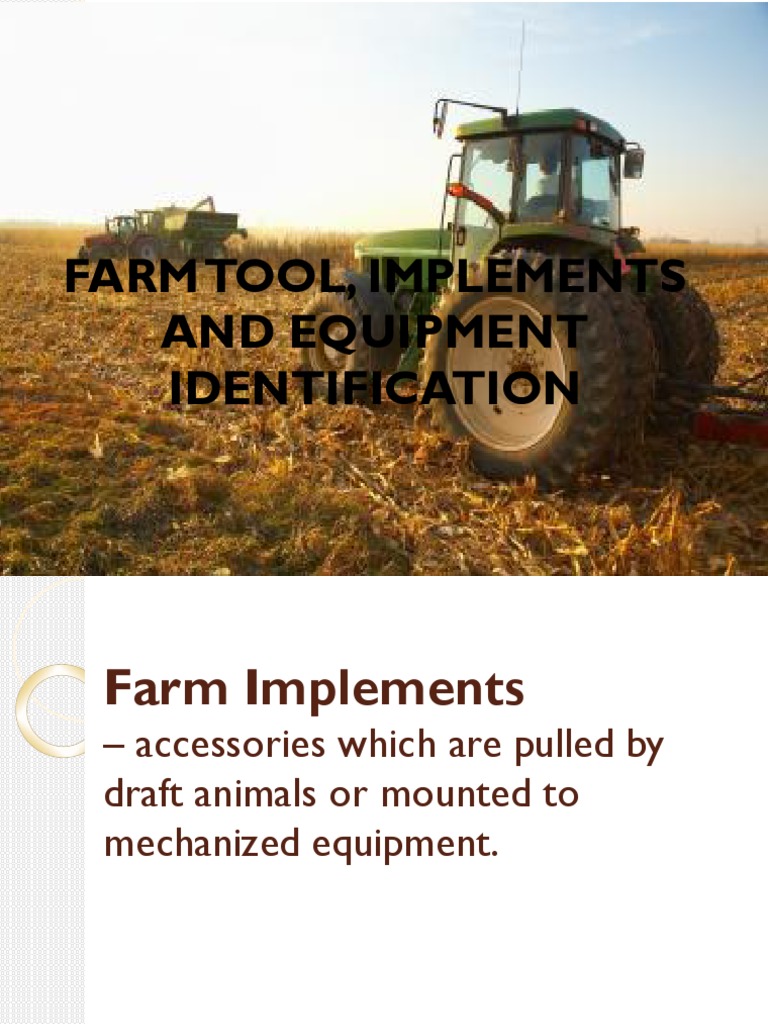Farm Tool, Implements and Equipment Identification | PDF | Agricultural ...