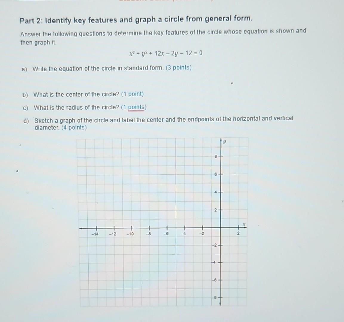Solved Part 2: Identify key features and graph a circle from | Chegg.com