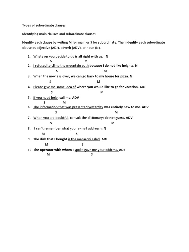 Main, Subordinate and Relative clauses - identifying the clause in the ...