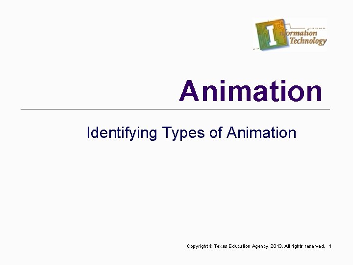 Animation Identifying Types of Animation Copyright Texas Education