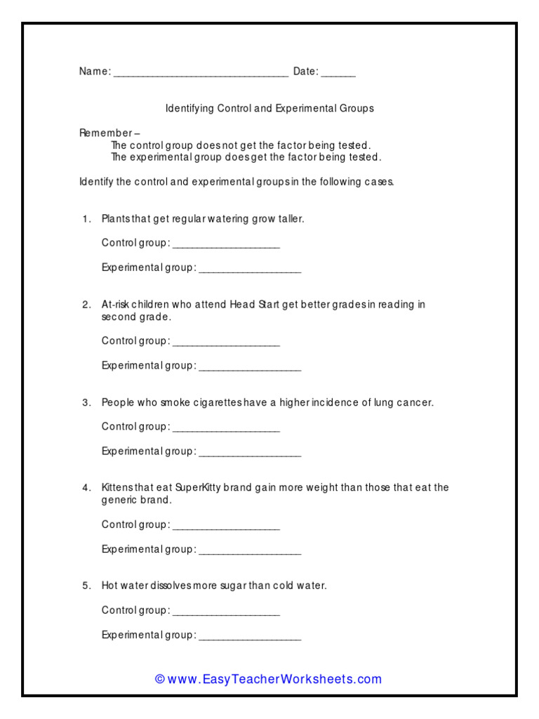Name: - Date: - Identifying Control and Experimental Groups | PDF