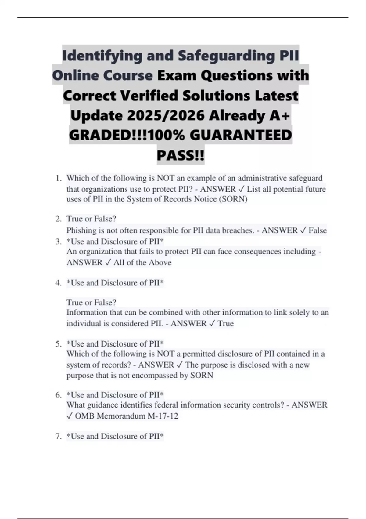 Identifying and Safeguarding PII V4.0 Exam Questions And Answers 100% ...