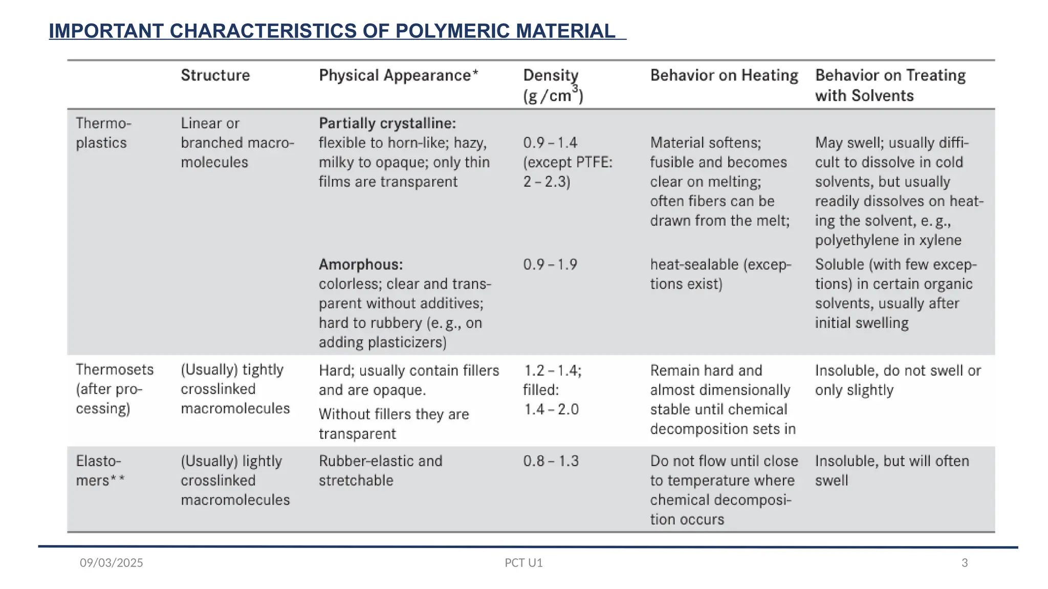 Polymer Chemistry Part 1 Polymer Characteristics and Classifications