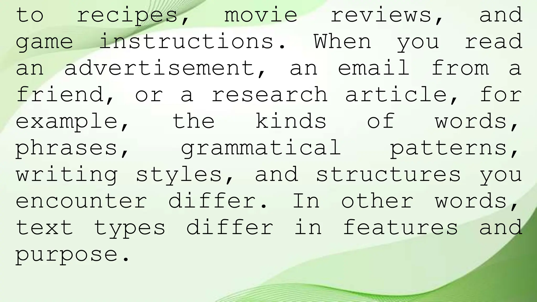 Distinguishing Text Types According To Purpose and Features | PDF ...