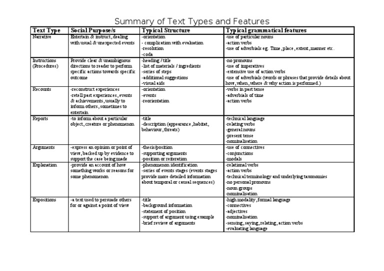 Text Types: Purpose, Structure, and Language Features | Download Free ...