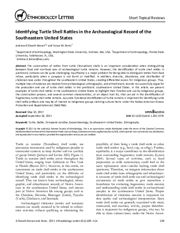 (PDF) Identifying Turtle Shell Rattles in the Archaeological Record of ...