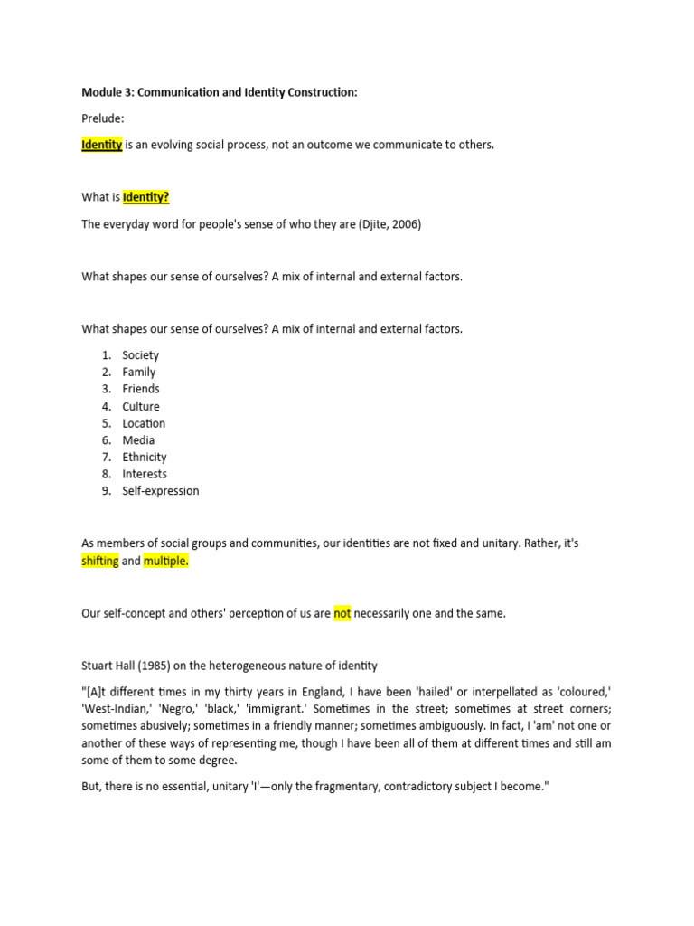 Understanding Identity Construction and Communication | PDF | Identity ...