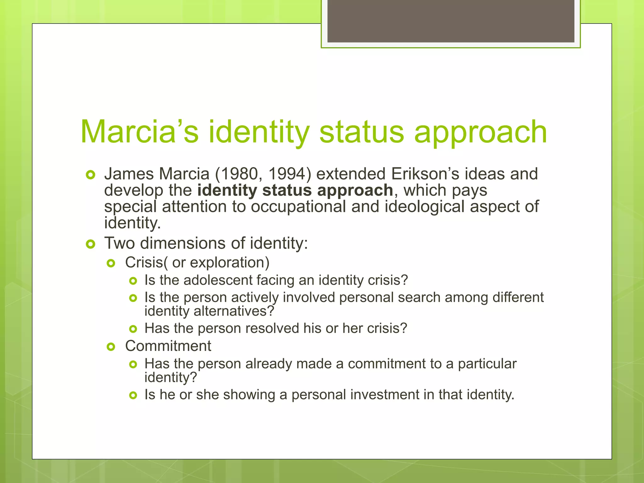 PPT - IDENTITY ACHIEVEMENT ERIK ERIKSON AND JAMES MARCIA PowerPoint ...