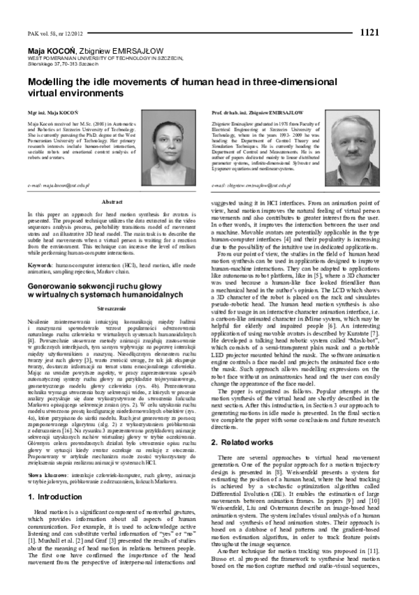 (PDF) Modelling the idle movements of human head in three-dimensional ...
