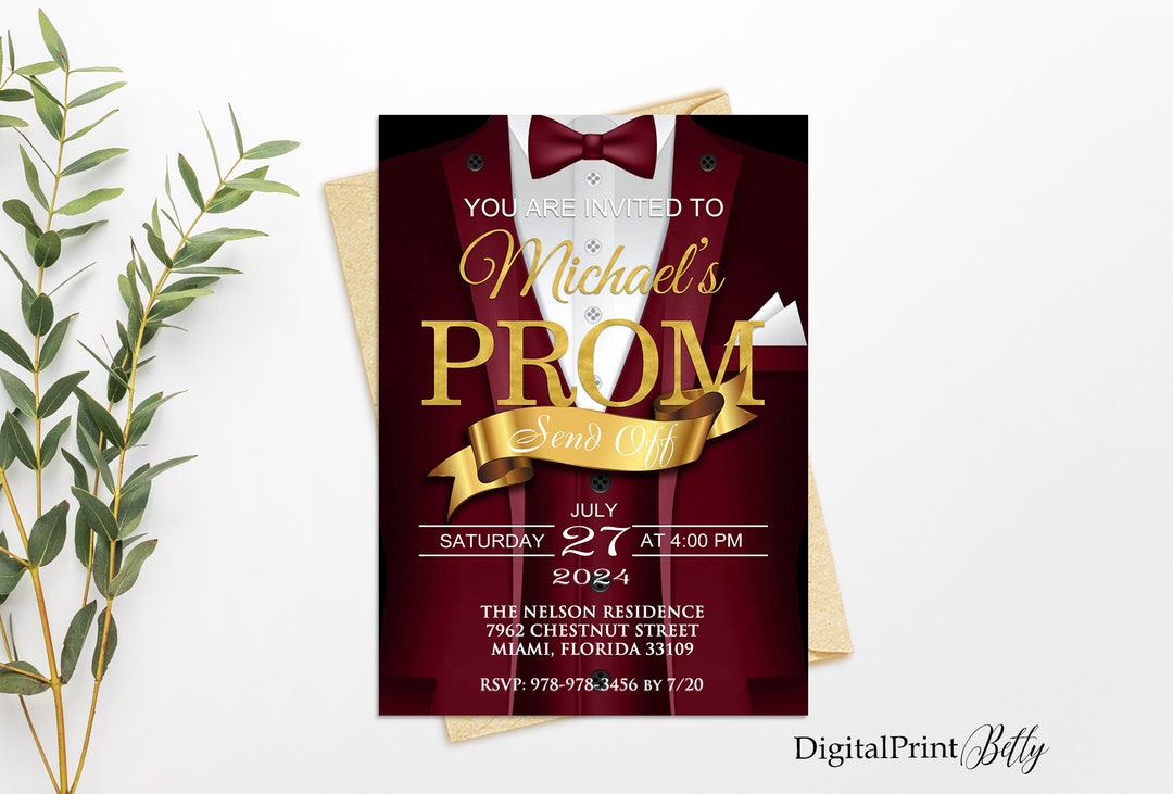 Prom Send off Invitations, Tuxedo Invitation, Prom E-invite Party, Gold ...