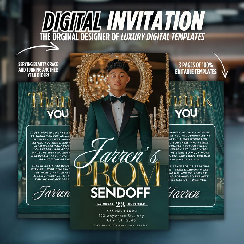 Green & Gold Prom Send off Invitation: Editable Template (digital ...