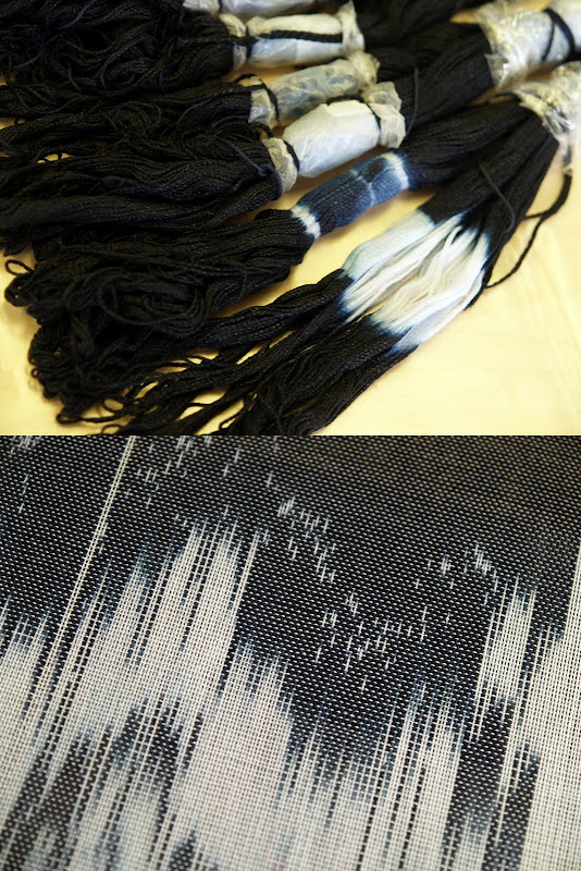 "Ikat" technique -Designing directly on the thread by tying a bunch of ...