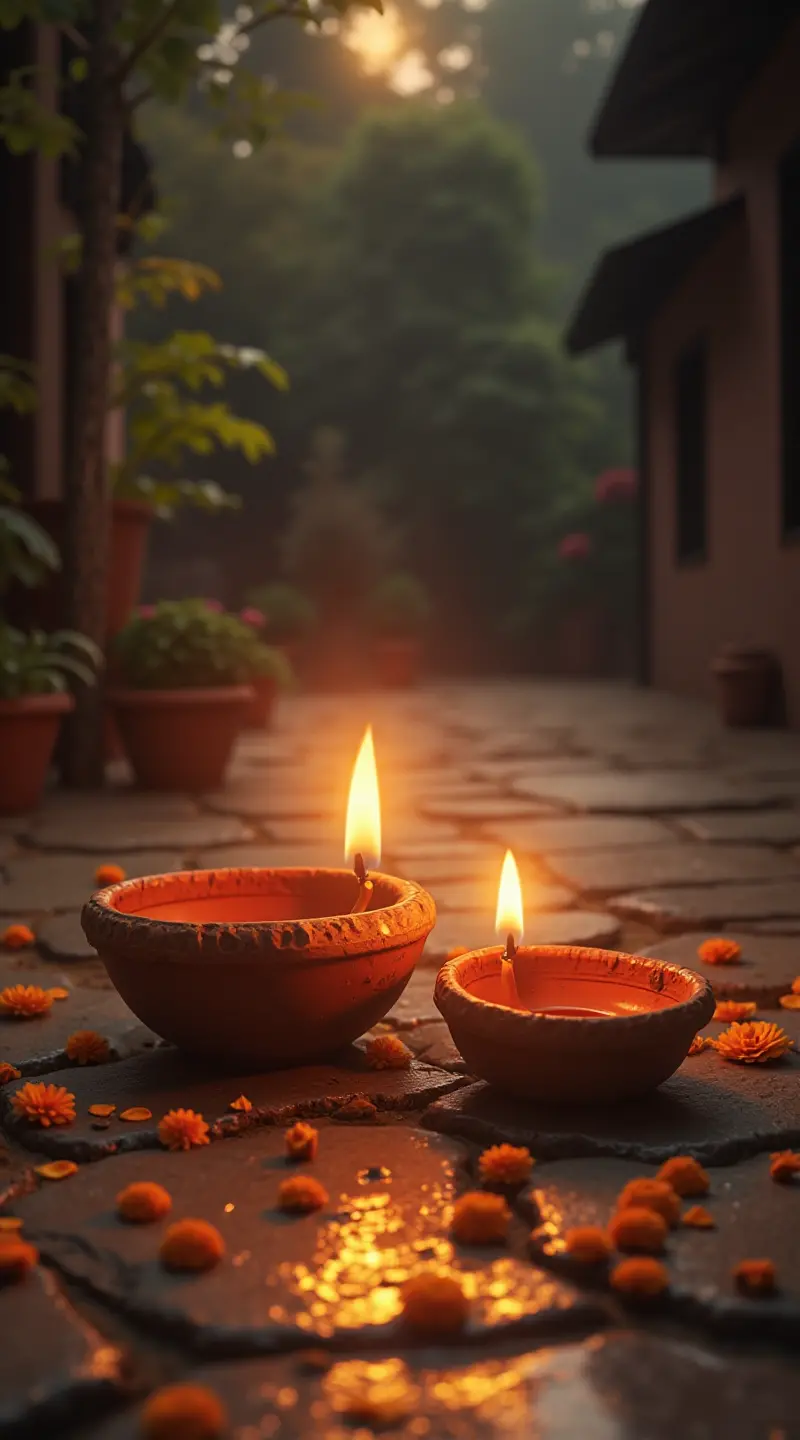 Diyas of Unity and Hope Illuminating the Dawn Light