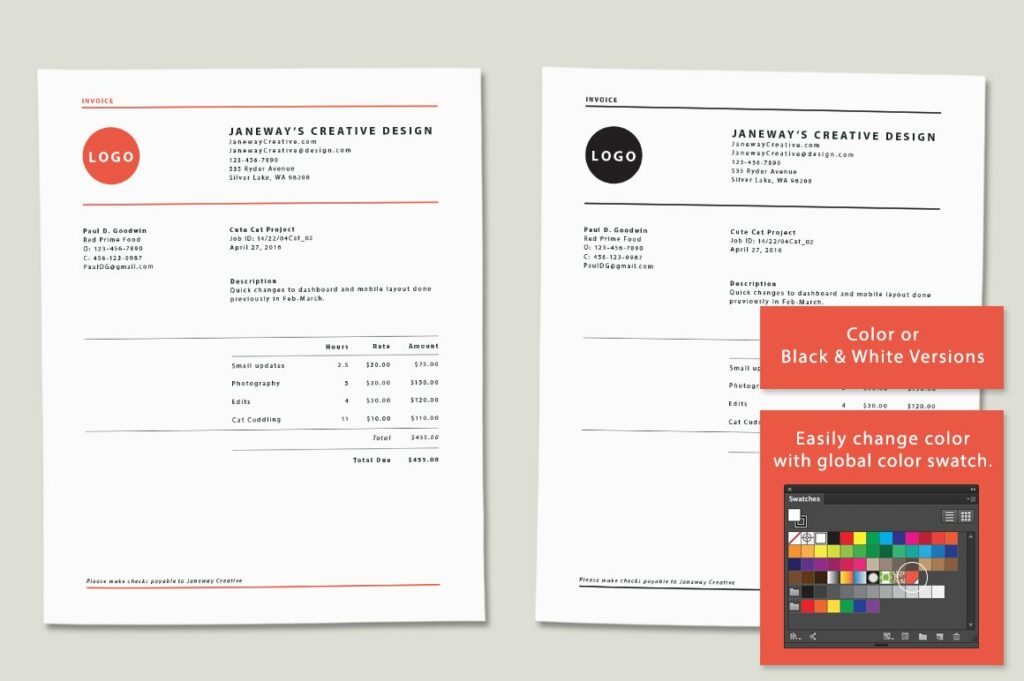 Invoice Template for Freelancers – Adobe InDesign & Illustrator | Buy ...