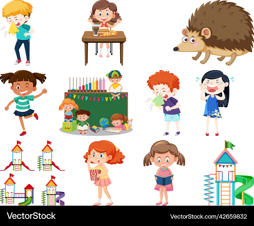 Set of different cute kids and objects Royalty Free Vector