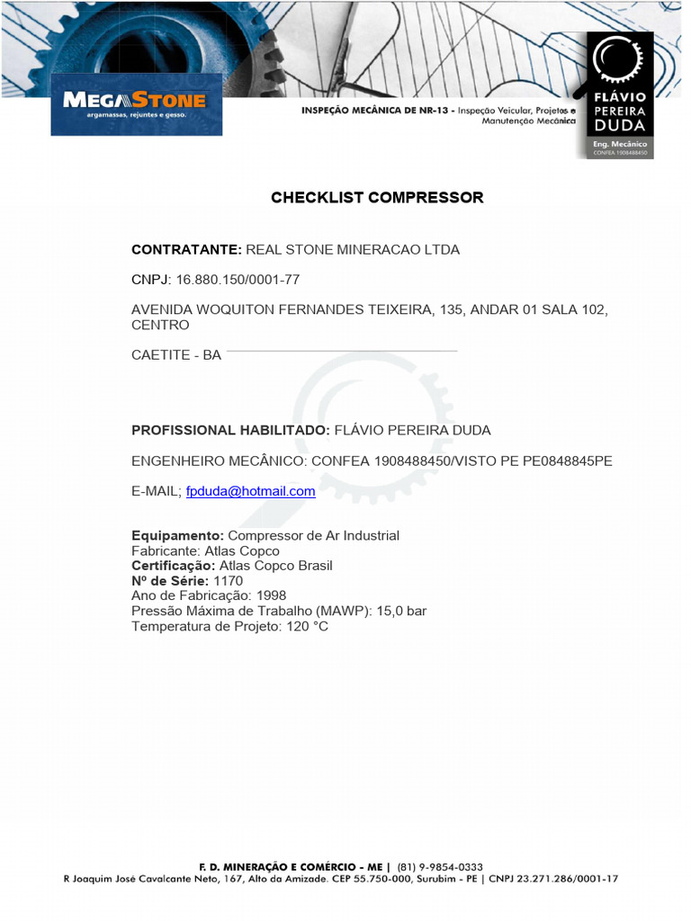 Checklist Compressor - Corrigido | PDF | Arbitragem | Carro