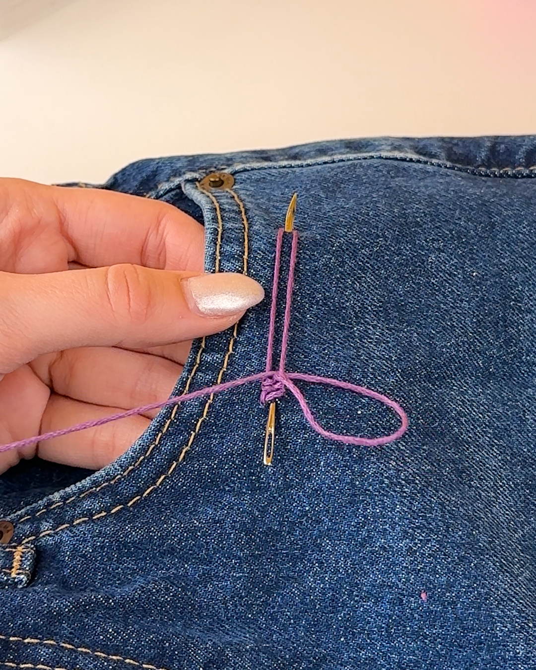 Un point à la fois pour cette astuce de broderie sur jeans💜🪡