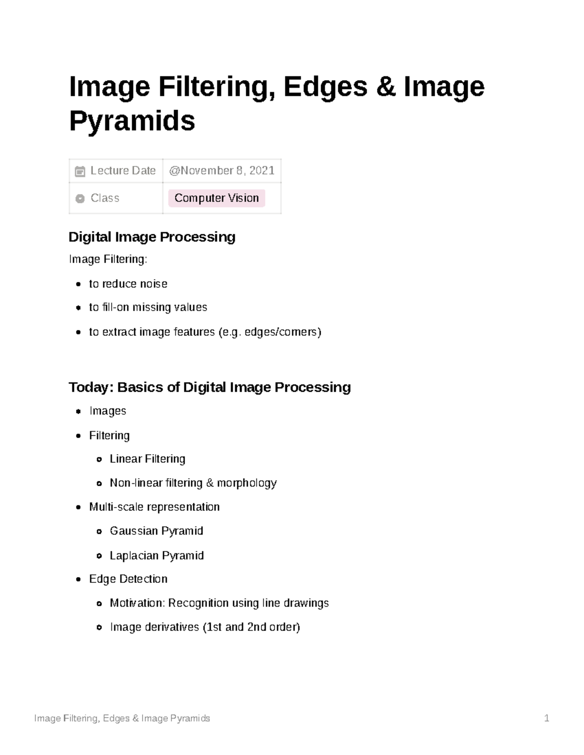 Image Filtering, Edges, Image Pyramids - Notes - Image Filtering, Edges ...