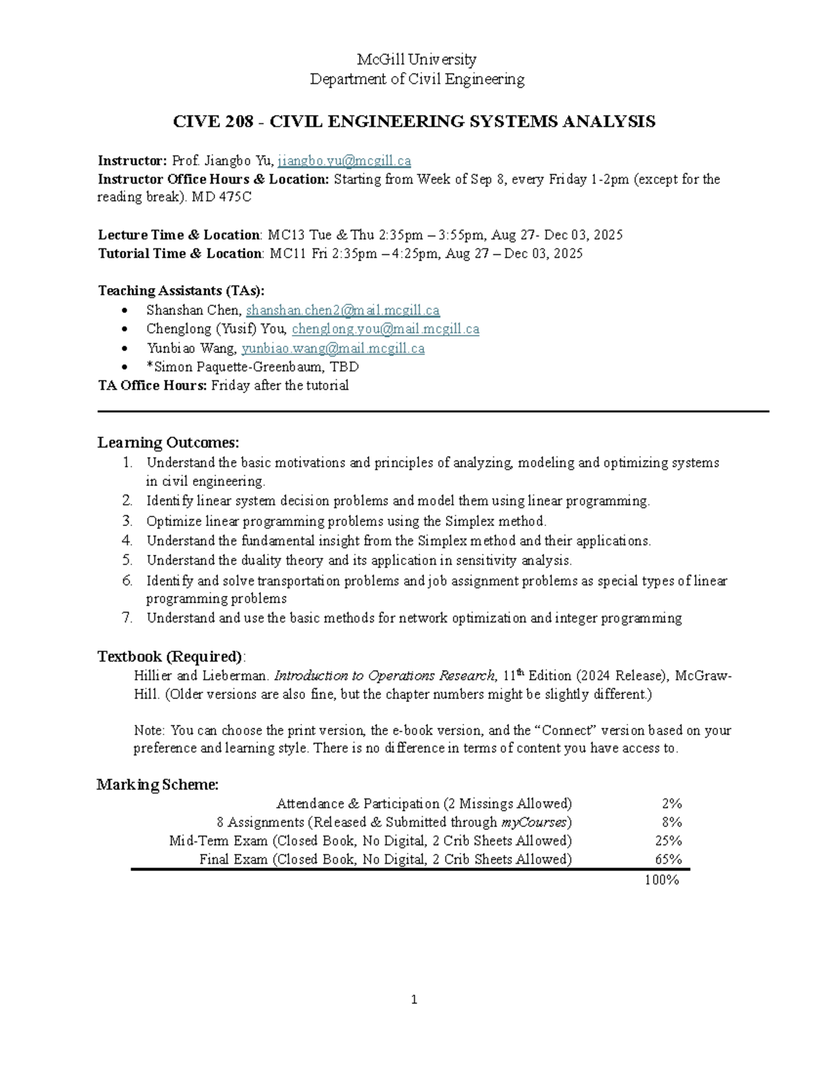 Syllabus for CIVE 208: Civil Engineering Systems Analysis - Part B 2025 ...