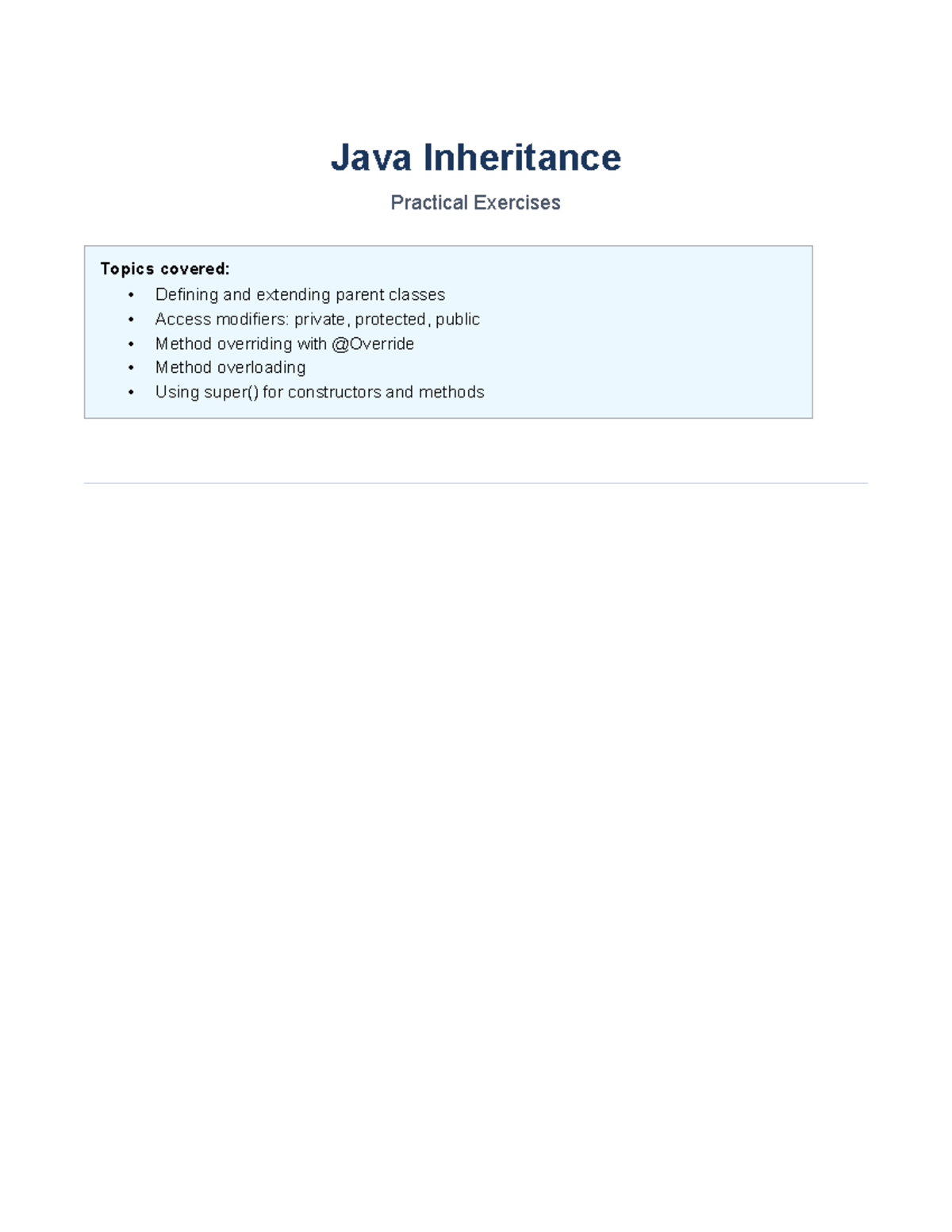 Java Inheritance Practical Exercises (CS101) - Studocu