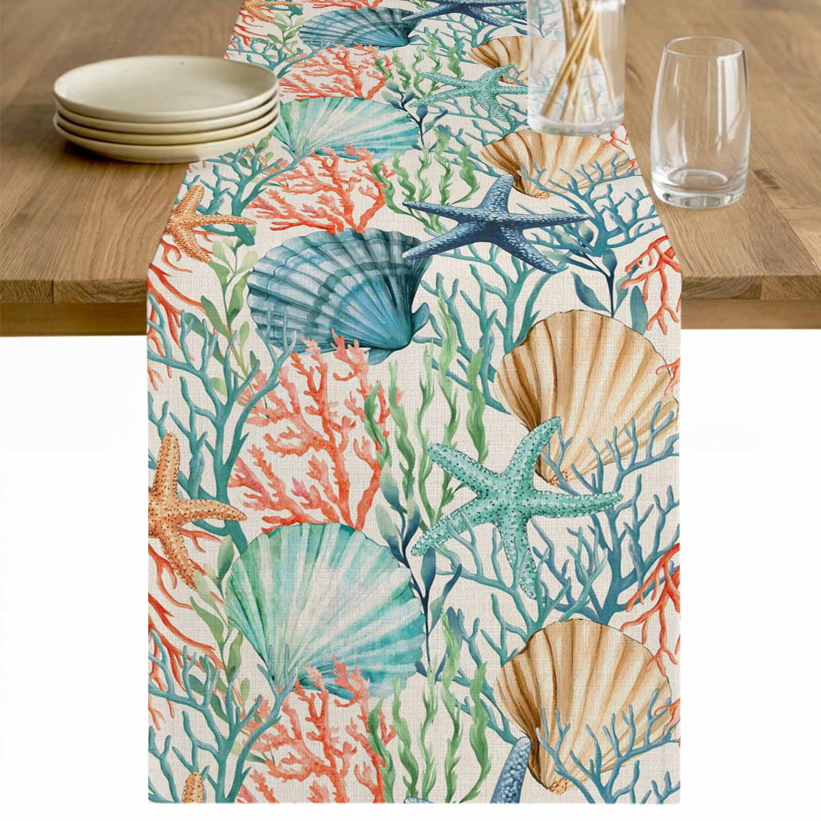 Coastal Beach Table Runner - 90 Inch Long Nautical Summer Coral ...