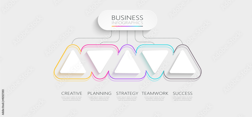 Modern Imitating Neon Thin Line Infographic Template with 5 Steps for ...