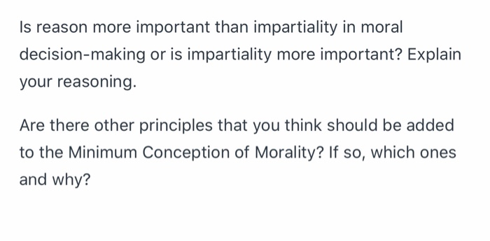 Solved Is reason more important than impartiality in moral | Chegg.com