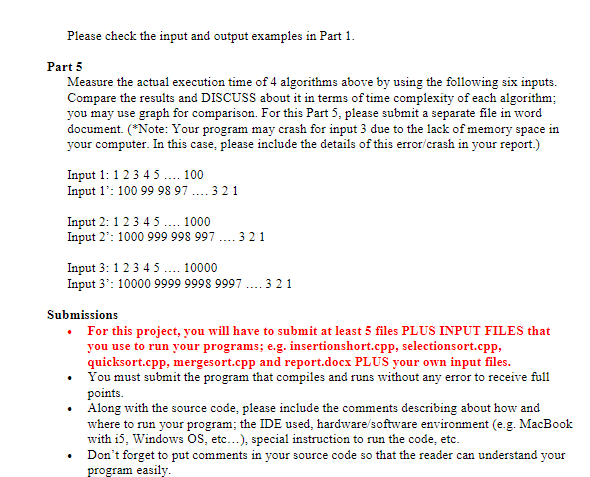 Solved Implement the Insertion sort algorithm. Your code | Chegg.com