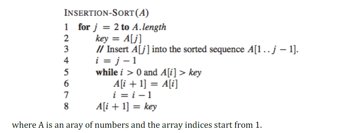 (Solved) - Convert this insertion sort algorithm to java code Insertion ...