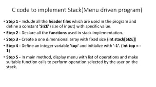 Menu driven C program for implementation of stack | Malayalam tutorial ...