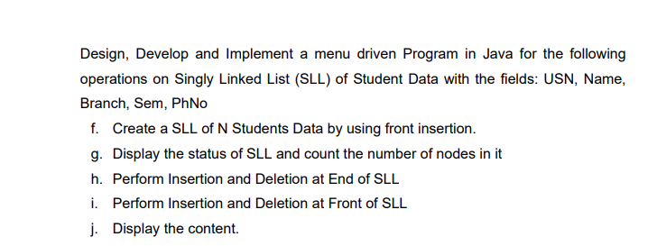 Solved Using a Menu driven program show the implementation | Chegg.com