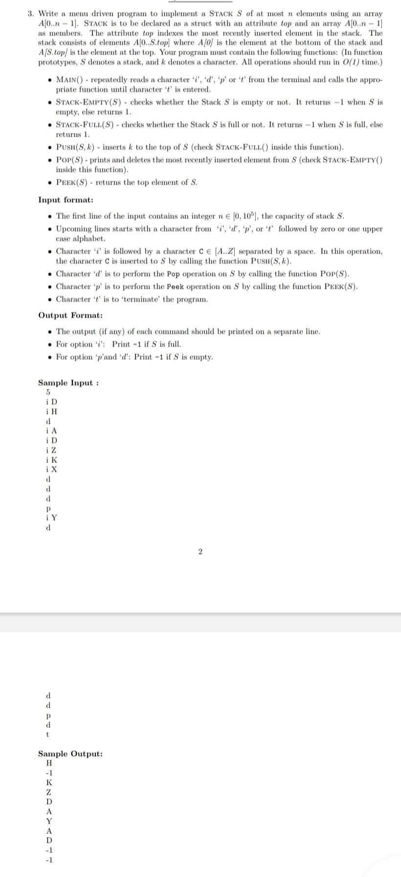 3. Write a menu driven program to implement a STACK S | Chegg.com