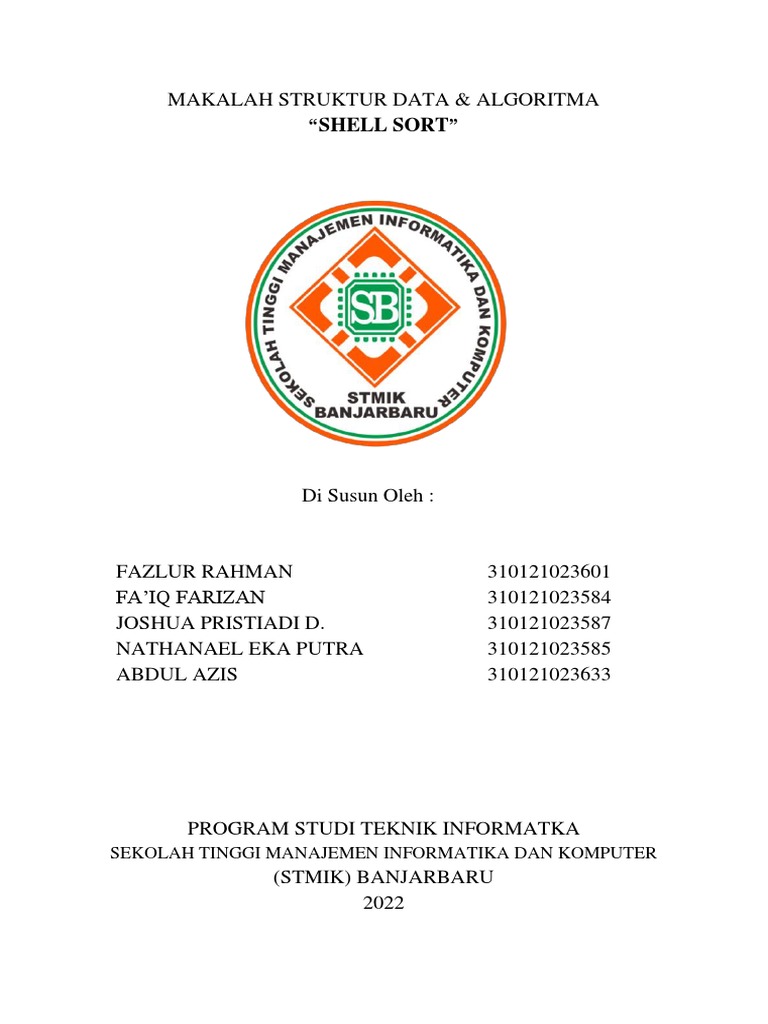 Materi algoritma dan pemrograman tentang shell sort serta contoh ...