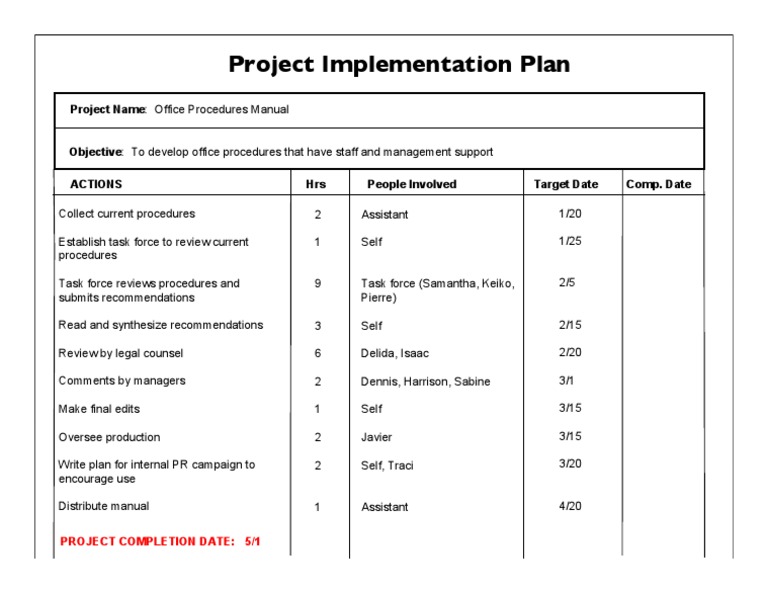 Sample Implementation Plan Template, Free download this sample project ...